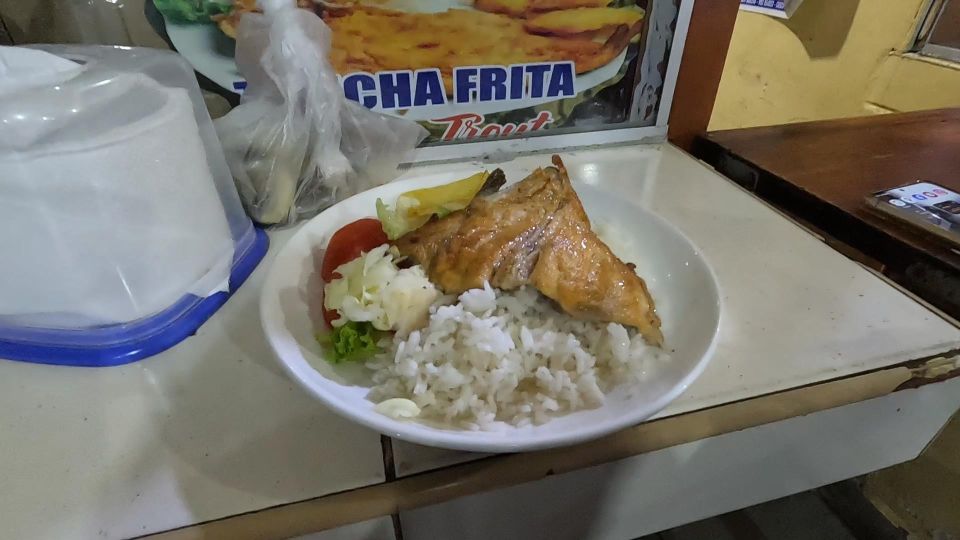 ここは格安。フライドトラウト(マス)ご飯、ポテト付きを食べる。S/12で十分美味しい。