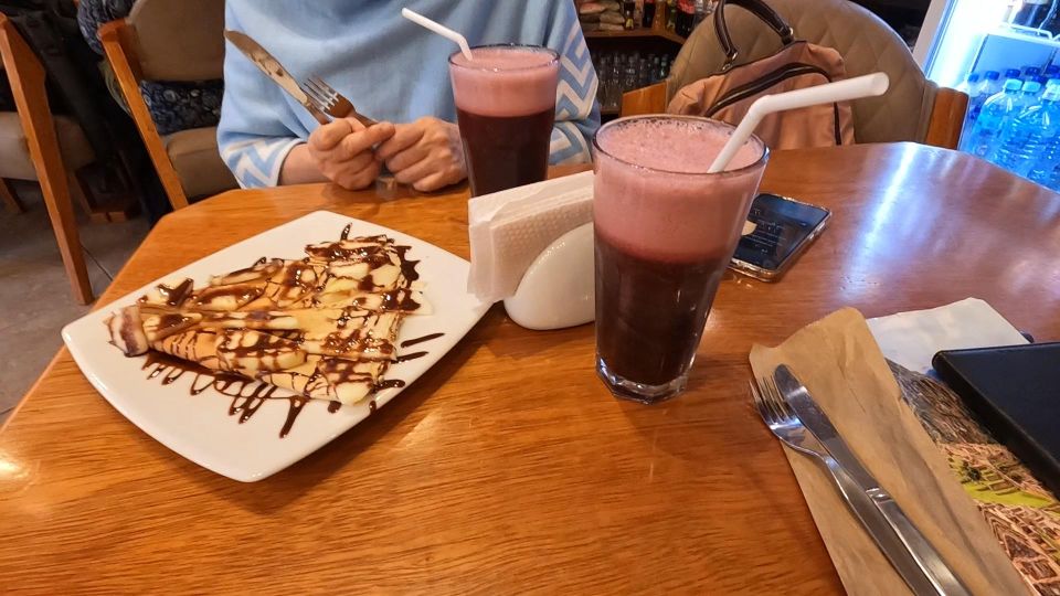 15時過ぎにバスのチケット売り場を確認し、カフェで休憩。クレープとチチャレモネードを食べる。